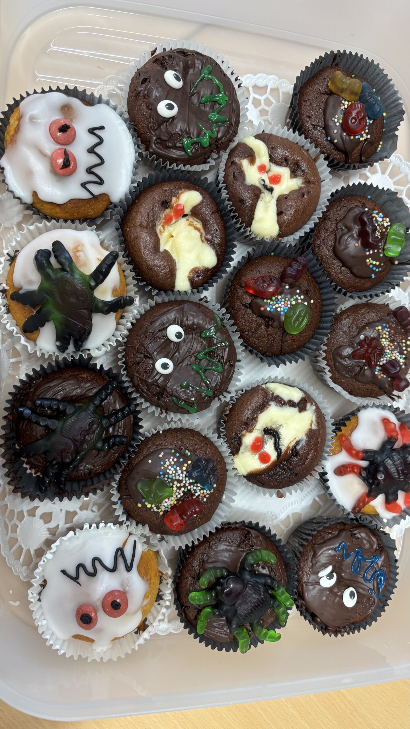 Alle Kolleg:innen der Marienschule wünschen ein schaurig gruseliges Halloween Fest. Frau Glenz unsere Sekretärin hat es sich nicht nehmen lassen, auch das Sekretariat zu schmücken und das Kollegium mit gruseligem Gebäck zuverwöhnen. Danke!
