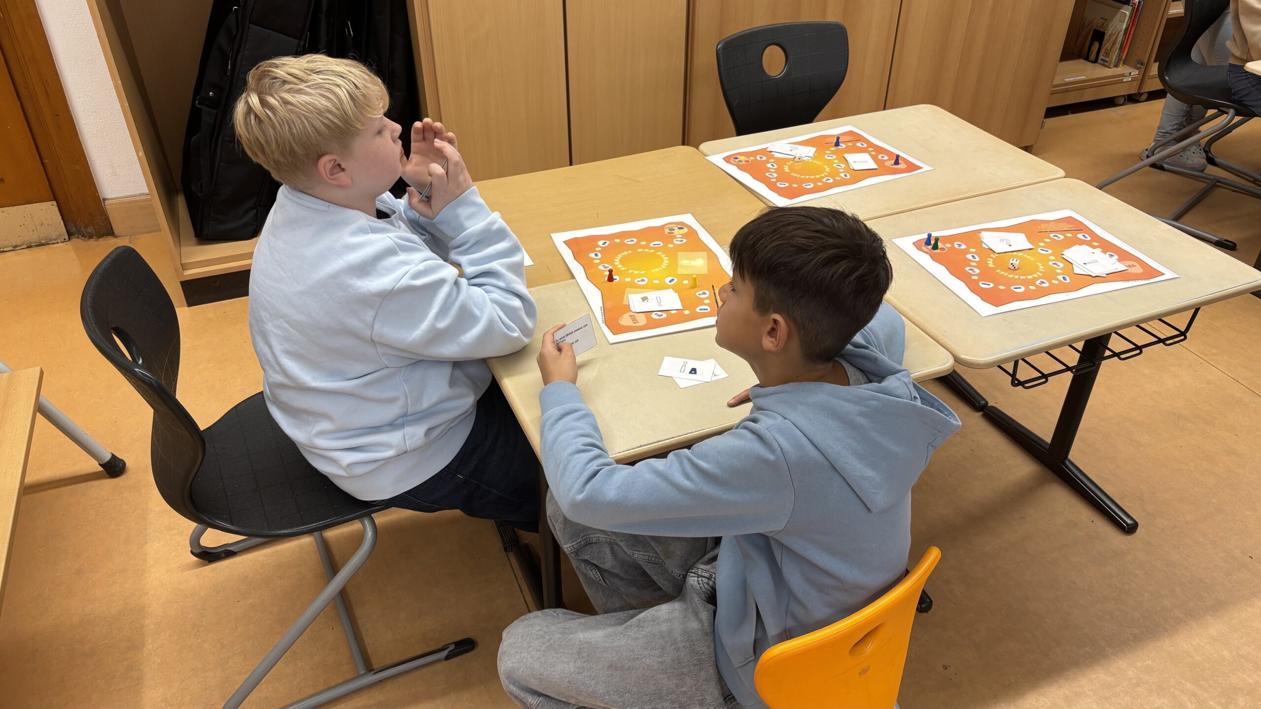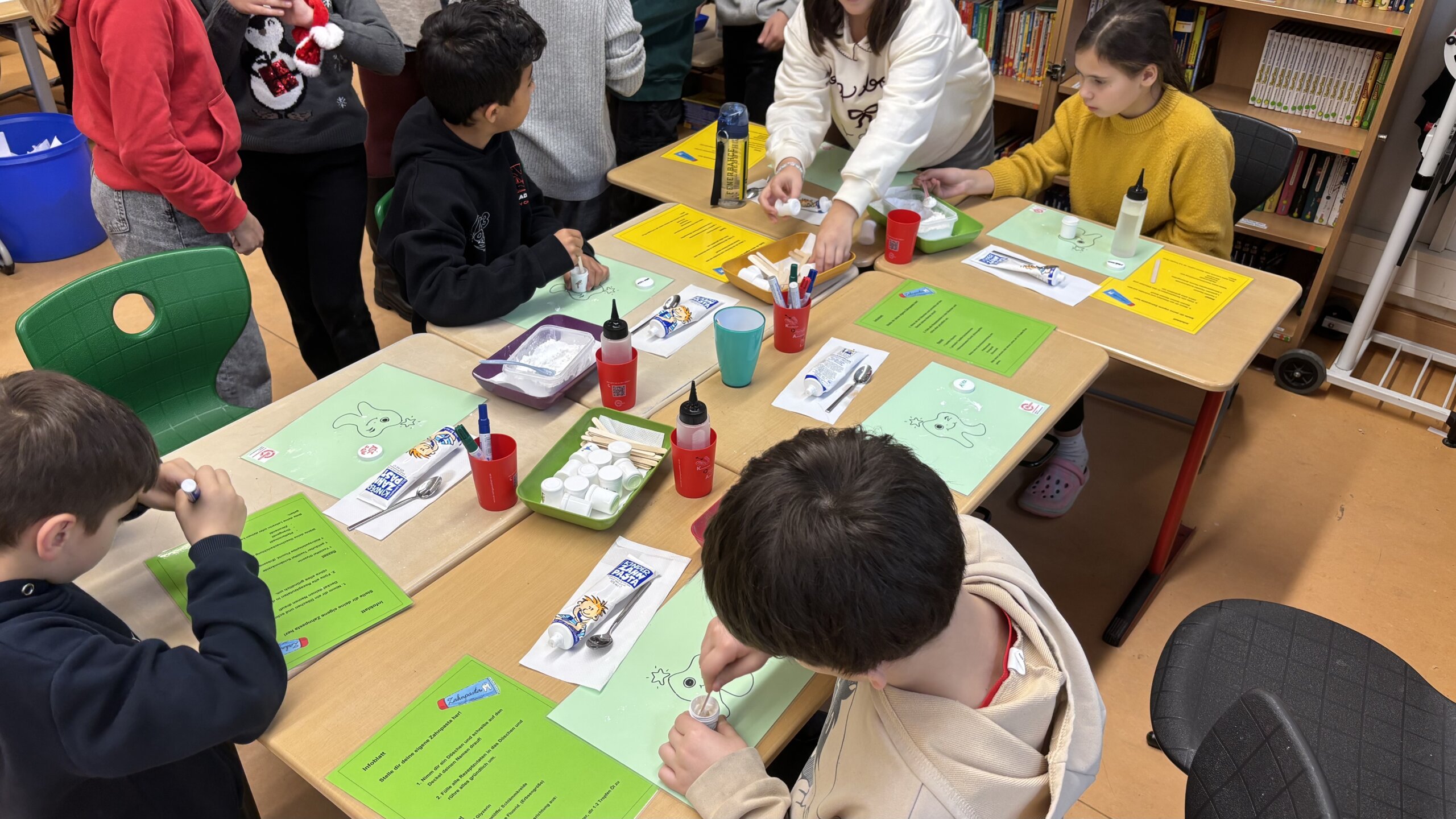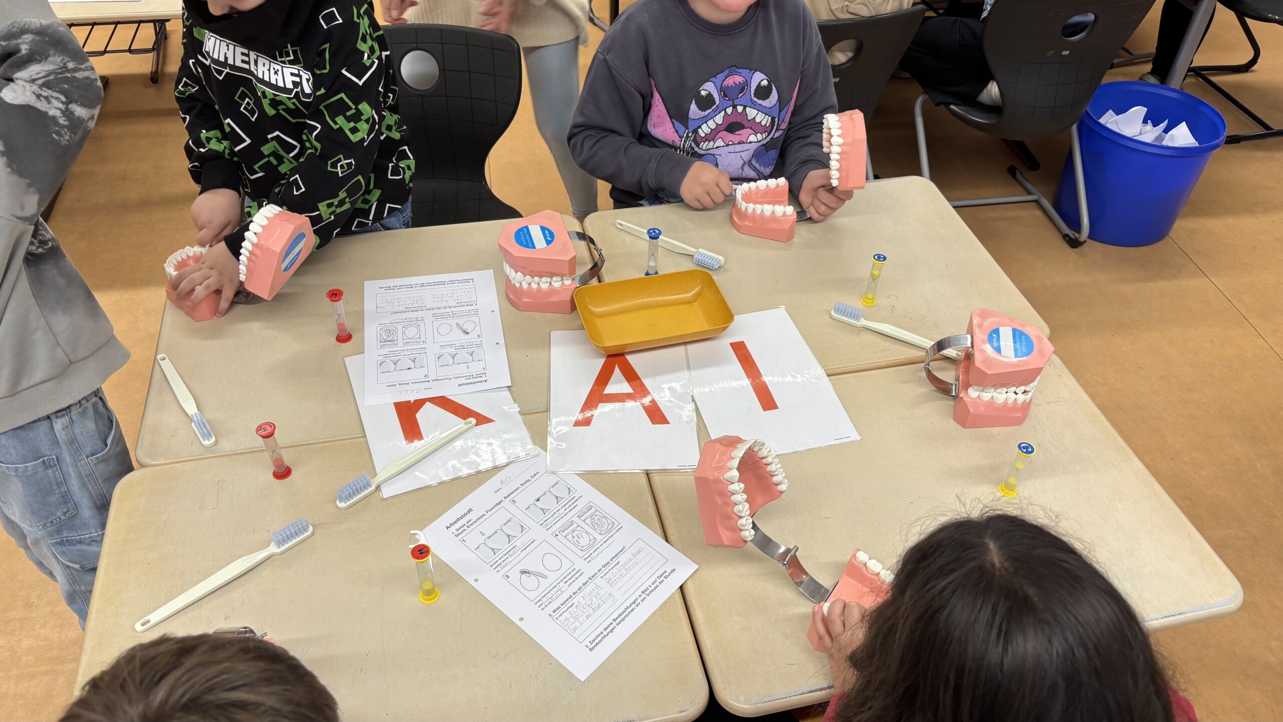 Am 12. November 2025 besuchte Frau Migras die Erdmännchenklasse. Zuerst wurde das Wissen ab Klasse 1 aufgefrischt. Vom richtigen Zähneputzen bis zum chemischen Prozess über die Entstehung von Karies, haben die Kinder viel wiederholt und neues gelernt. Dann durften sie an Lernstationen u. a. eigene Zahnpasta herstellen. So ein Highlight! Am Ende gab es noch einen Lob Stempel.